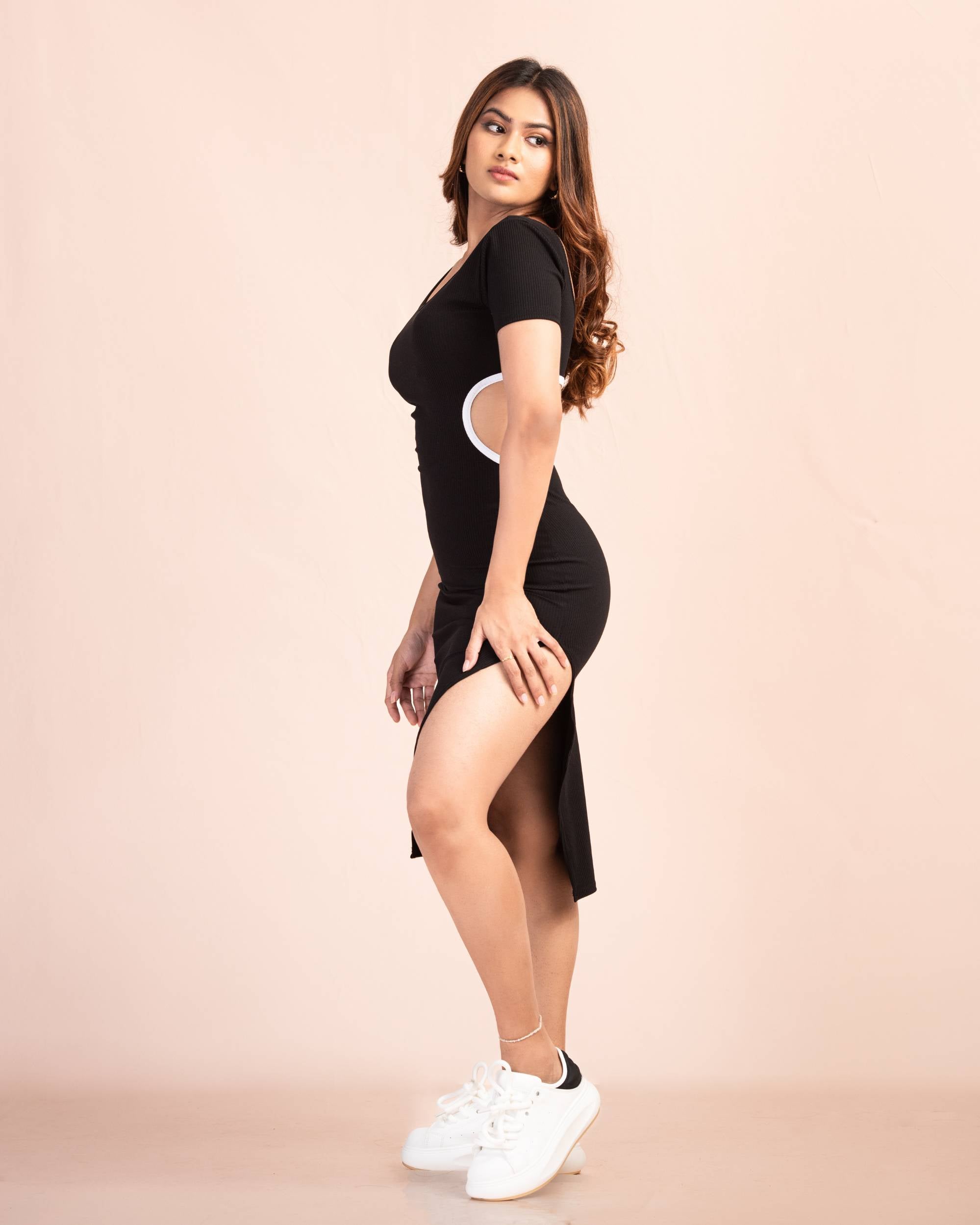 Discover the perfect blend of comfort and style with our casual ribbed dress, featuring a chic slit and an alluring open back. This versatile piece is designed to hug your curves while providing a relaxed fit, making it ideal for effortless day-to-night transitions.