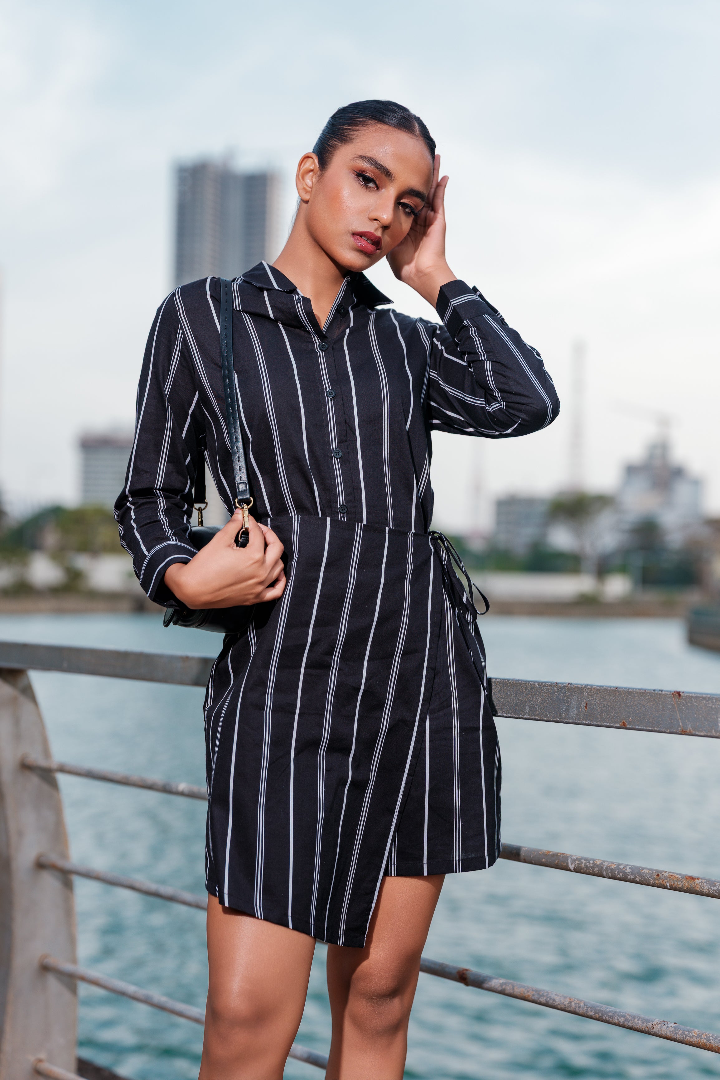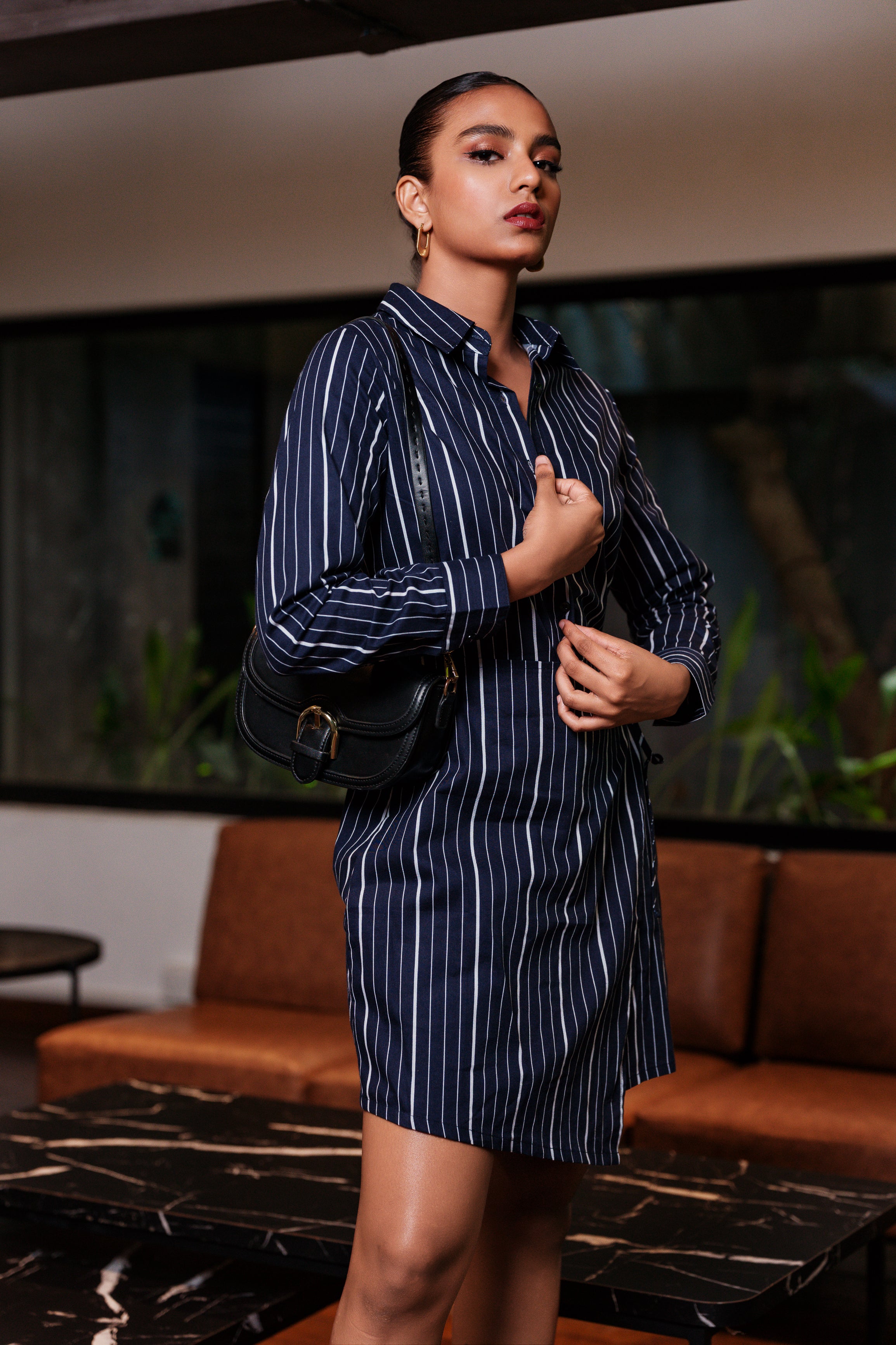 SKU: SL 1032 LONG SLEEVE STRIPE MINI DRESS Navy / S
