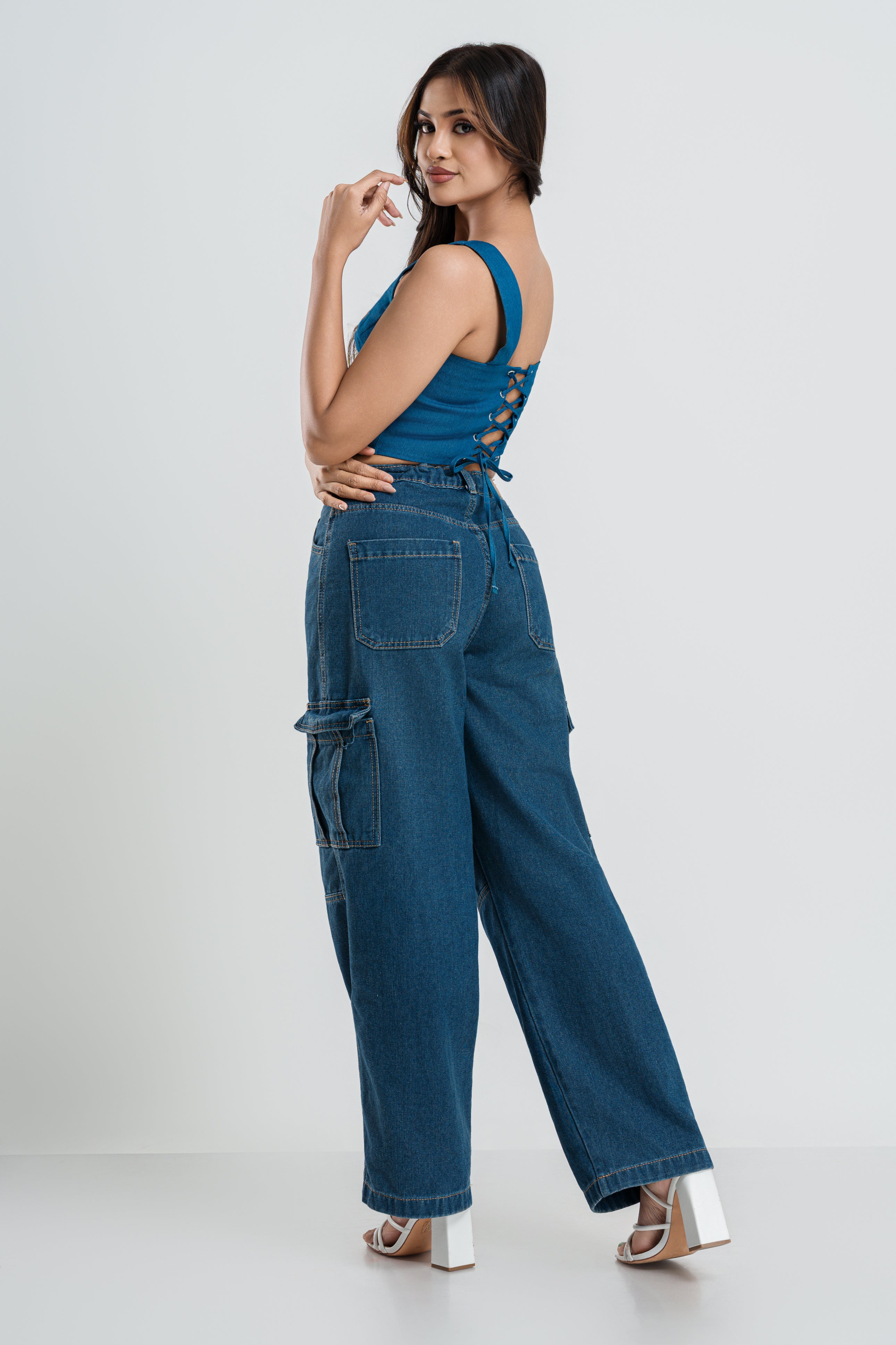 SKU: SL1107 - STRAP CORSET TOP-Blue / S