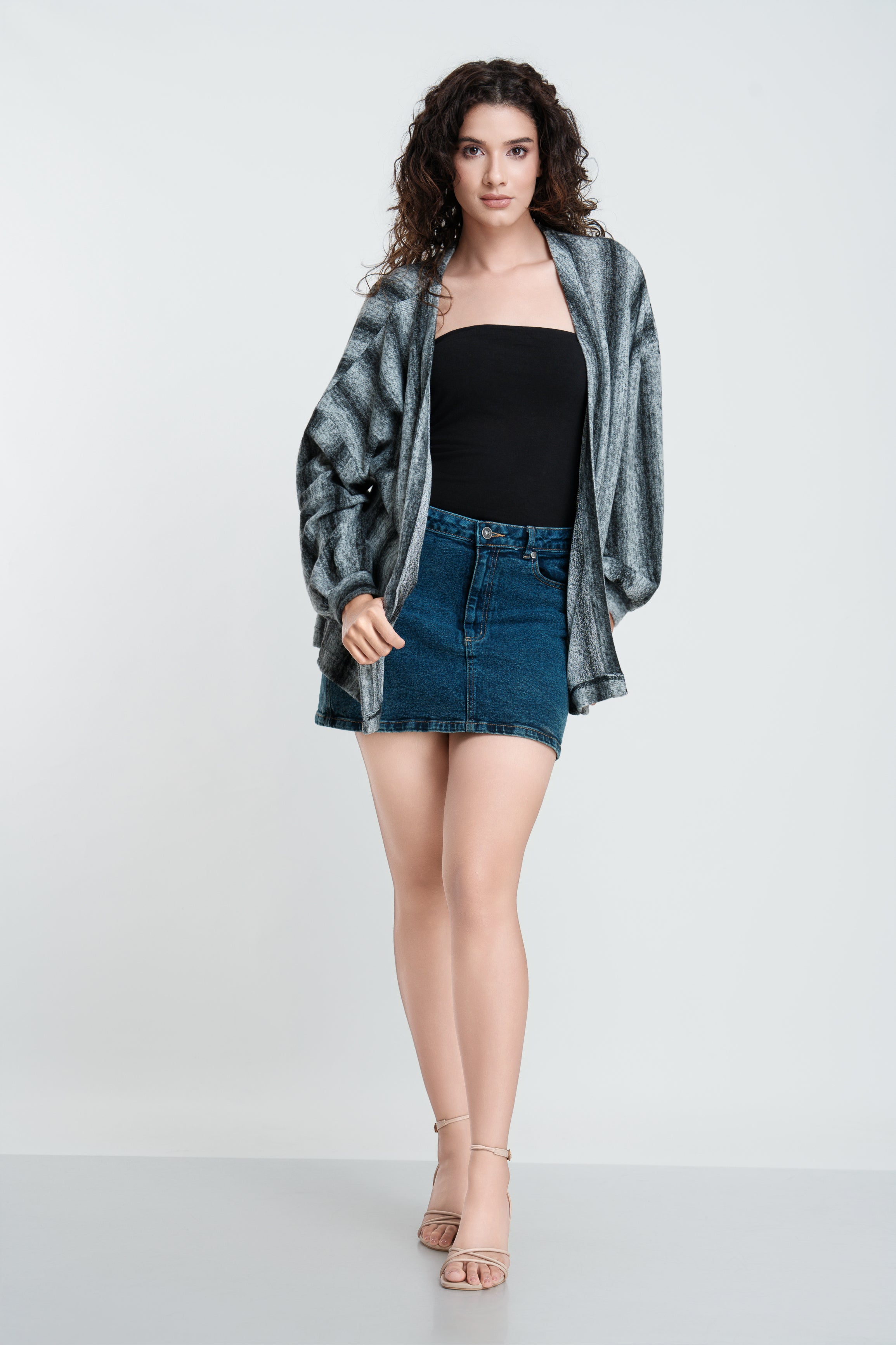 SKU: SL 1090 - Puff sleeve cardigan- black / FREE SIZE