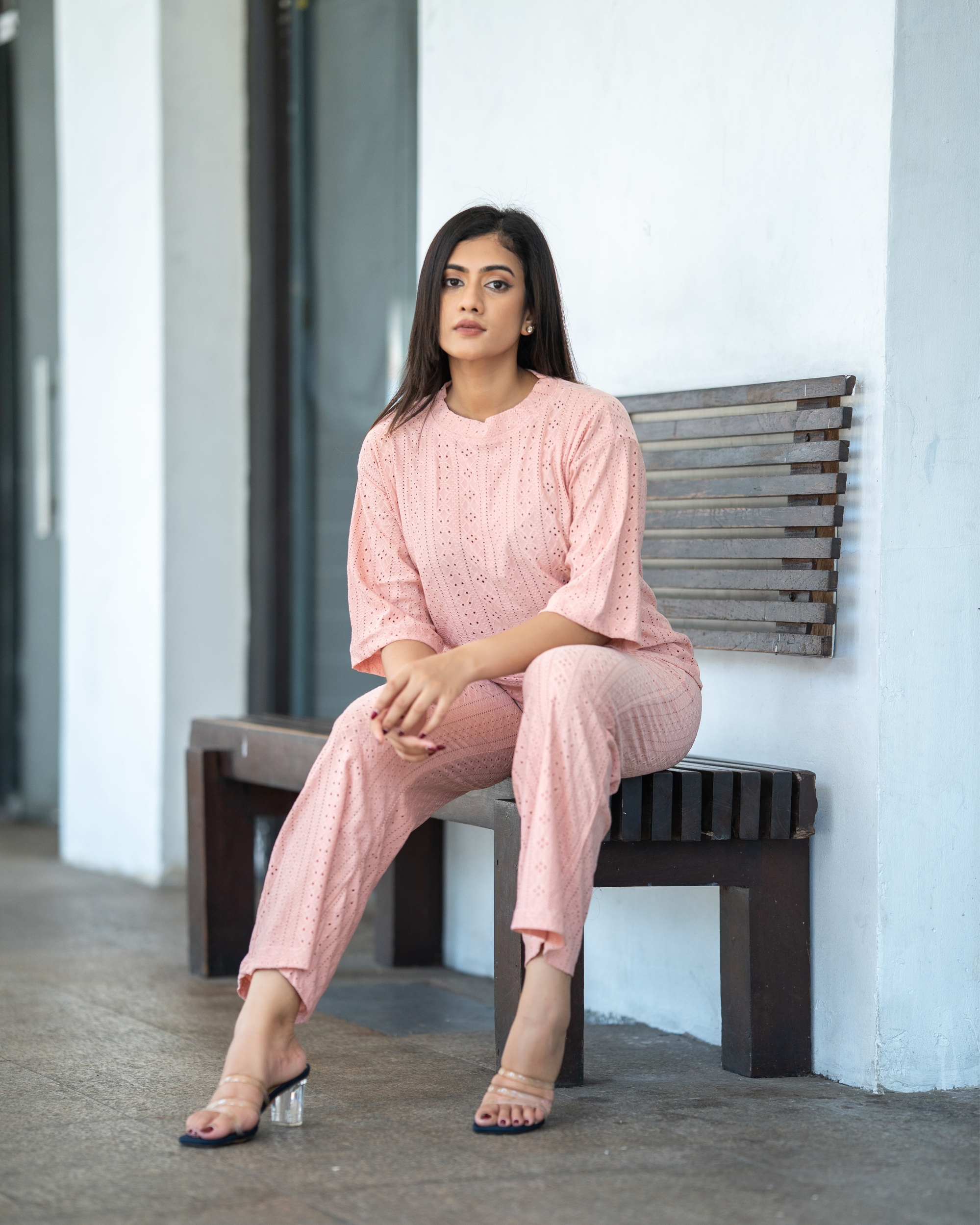 Soft, sweet, and effortlessly chic this blush pink co-ord set is your new go-to for comfy glam. Crafted with delicate eyelet fabric and a relaxed fit, it’s perfect for brunch dates, errands, or lounging in style. Wear together or mix and match either way, you're serving looks.