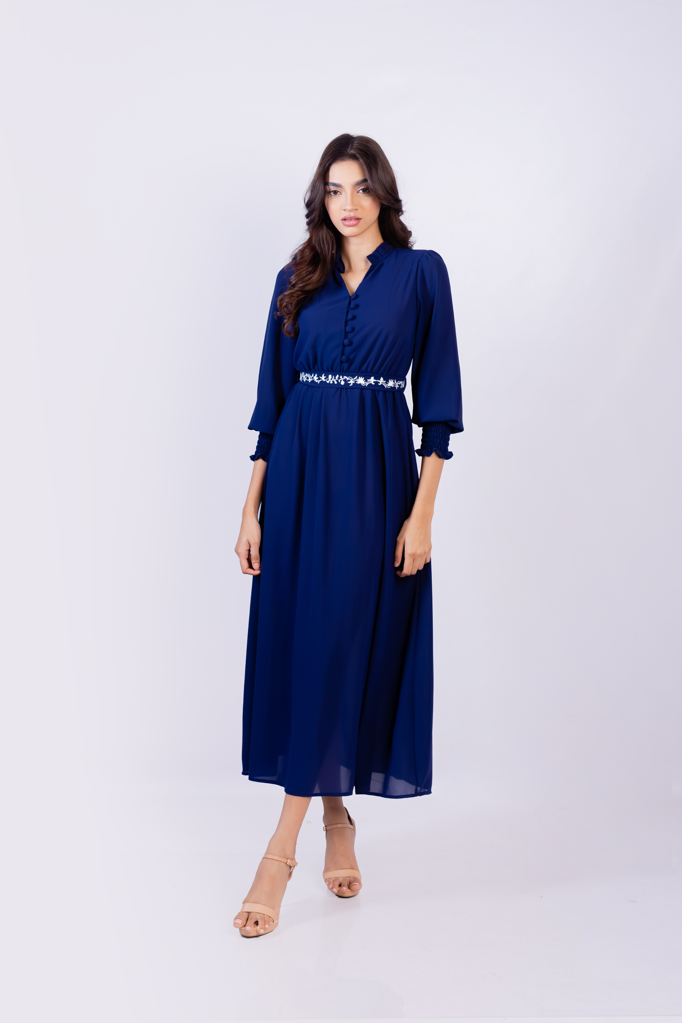 Elevate your everyday with this chic navy and green shirt dress. Featuring a flattering waist tie and flowy silhouette, it’s versatile enough for workdays, casual outings, or evening dinners.