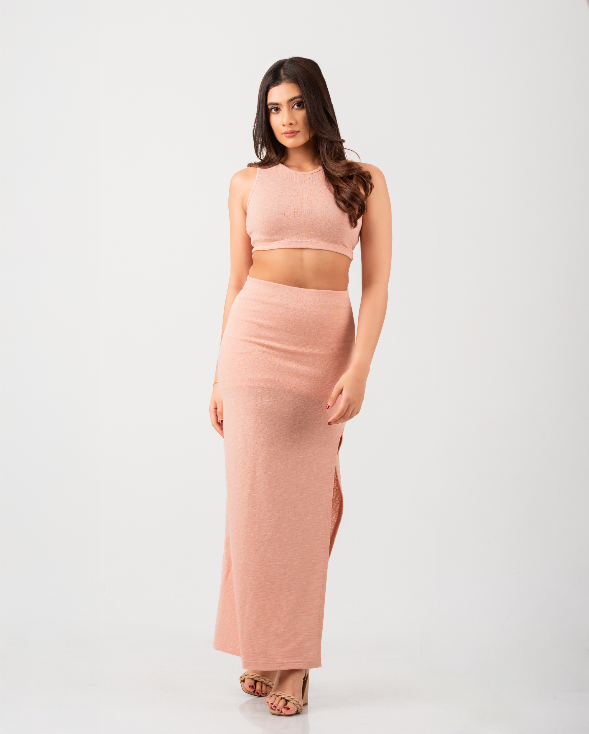 Turn heads in this sleek, body-hugging long skirt and matching top—effortlessly chic and made to flatter every curve